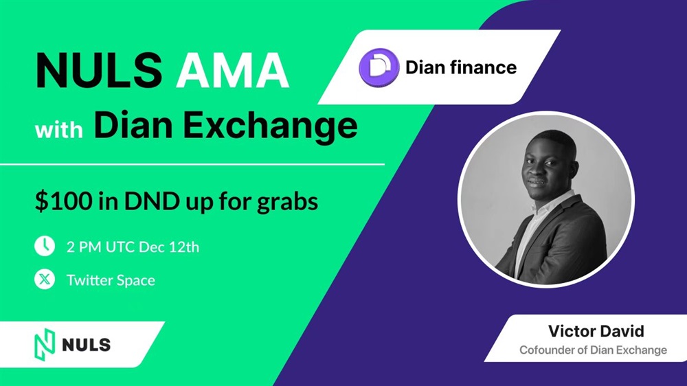 Nuls will host an AMA on X with Dian Exchange on December 12th at 2 pm UTC. The guest for this event will be the co-founder of Dian exchange. During this event, there will be a distribution of $100 in DND tokens.