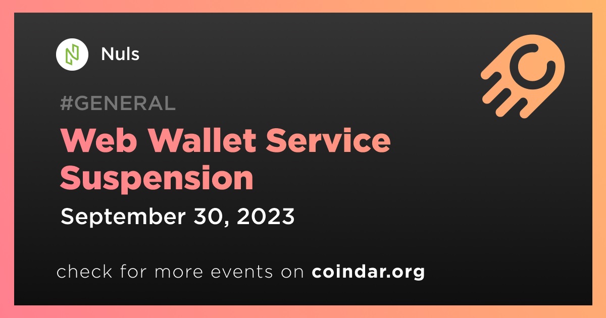 Nuls has announced that its web wallet service will be permanently suspended. The service, currently accessible via https://wallet.nuls.io/, will cease to be available after September 30th.