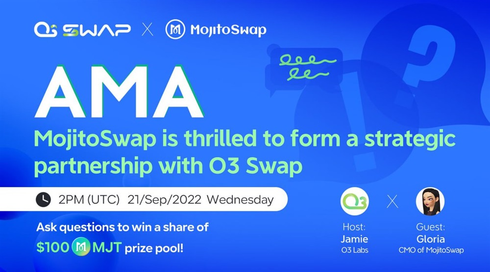 О3 Swap is having an AMA in our Discord with Gloria, the CMO of Mojito Swap tomorrow at 2 PM UTC to talk about our strategic partnership and more