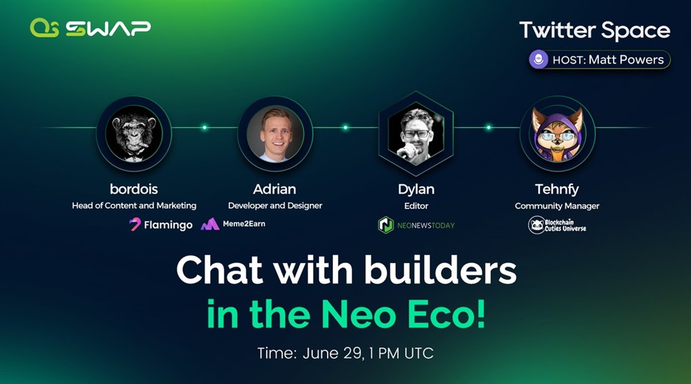 Join us to discuss #DeFi, #Memes, #GameFi, and #NFTs on the @Neo_Blockchain eco with @FlamingoFinance, @meme2earn_com, @BlockchainCutie, & @NEOnewstoday!