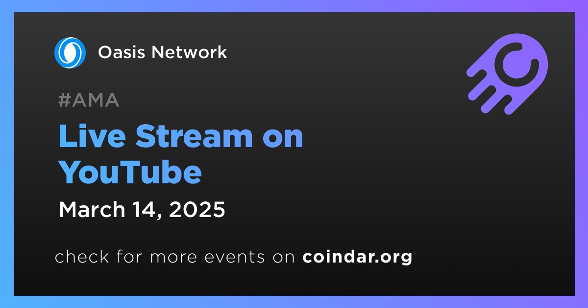 Oasis Network will host a live stream on YouTube on March 14th at 15:00 UTC.