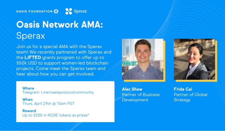 Join us for a special AMA with @sperax_io this Thursday 4/29 at 10am PT. We’ll dive into our new grants program designed to give out $50k in USD to women-led projects.