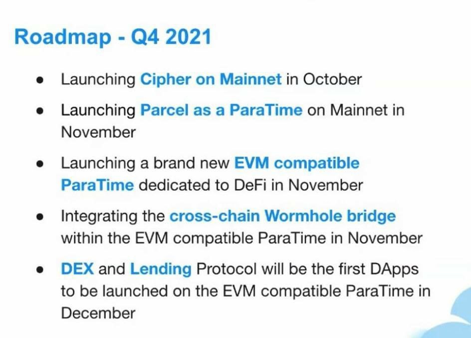 DEX will be the first DApps to be launched on the EVM compatible ParaTime in December
