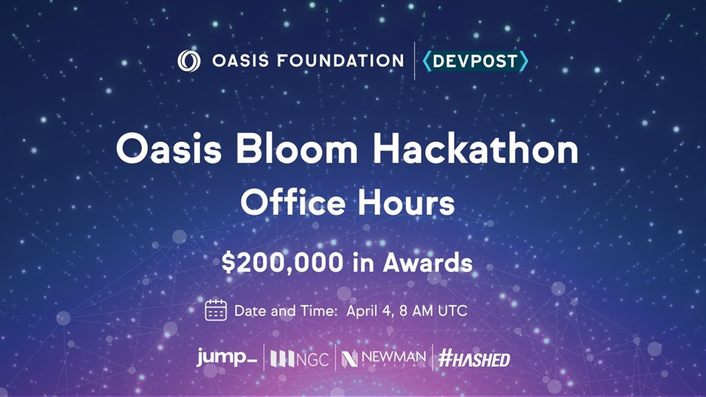 Join us for the $200K Oasis Bloom Hackathon Office Hours in our Discord Channel — April 4th at 8AM UTC! 🏵️
