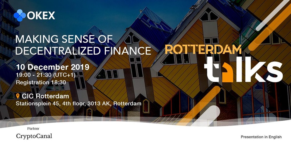 EVENT: #OKExTalks is coming to Rotterdam 🇳🇱 for the 1st time! Join us on 10 Dec to explore "Decentralized Finance" & the benefits & opportunities it presents. We'll be joined by a panel of DeFi experts - to be announced shortly.