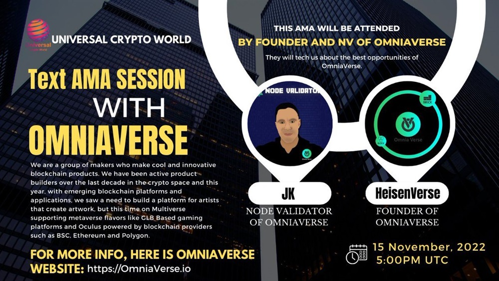 Nov. 15 we will be doing an AMA with Universal Crypto World.