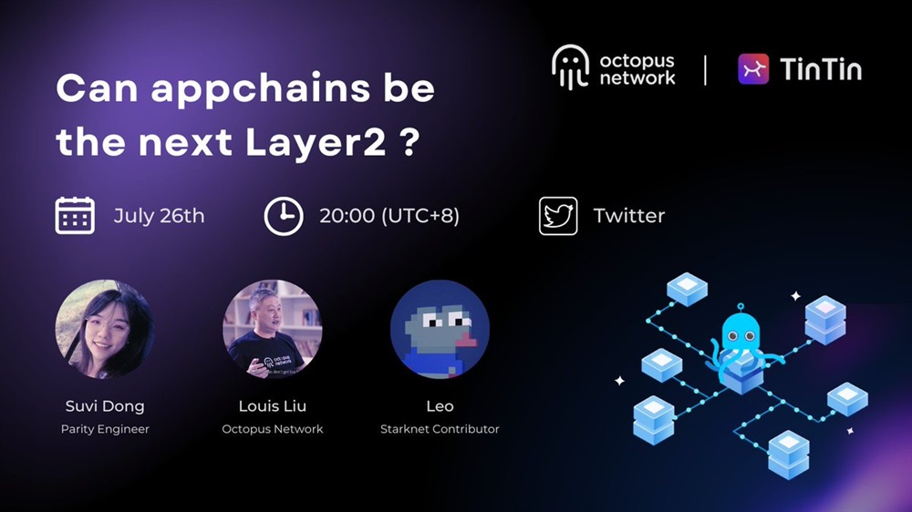 🔥 Appchains are hot again! 🔥 Can #appchains be the next Layer2 for #Web3? 🤔 Join us at TinTinLand's Twitter Space on july 26 with Octopus Network founder to explore the future of appchains!