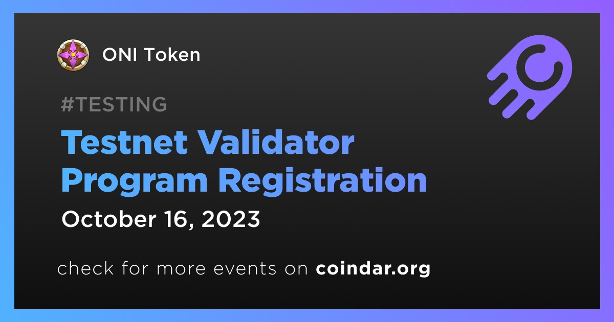 ONI Token is set to open its testnet validator program registration on October 16th. This will allow users to be among the first to test the new network.
