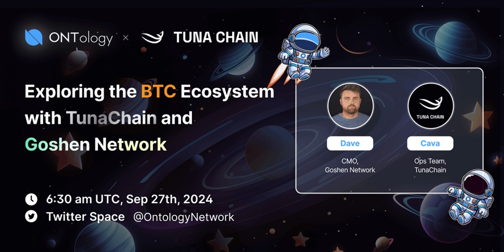 Ontology will host an AMA on X on September 27th at 6:30 AM UTC. The event will feature speakers the CMO from Goshen, and a representative from the operations team at TunaChain. The discussion will primarily focus on Layer2 solutions and EVM Compatibility.