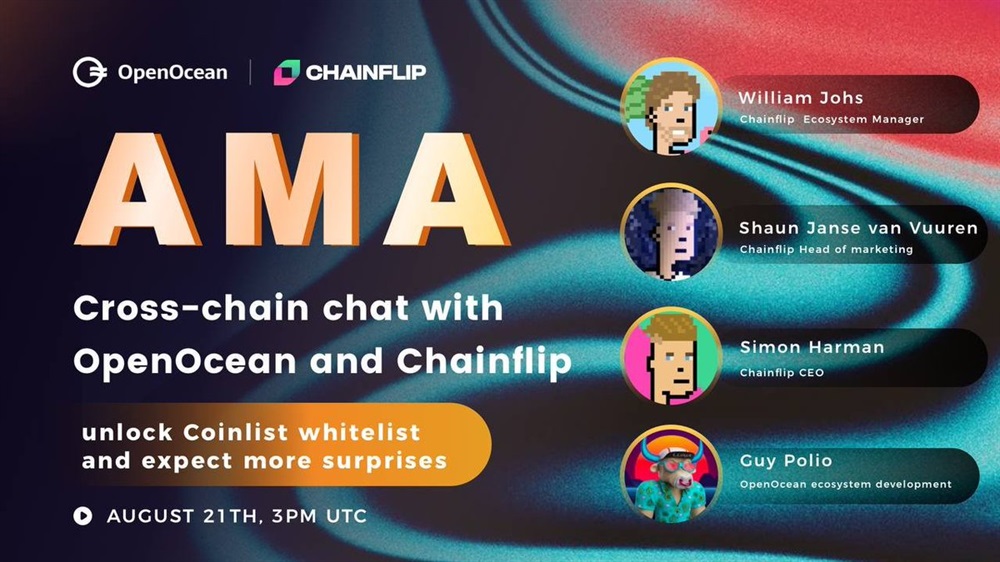 OpenOcean will host an AMA on Twitter which will focus on cross-chain capabilities. The event, scheduled for August 21st at 3 pm UTC, will feature representatives from Chainflip Labs, a recent partner of OpenOcean.