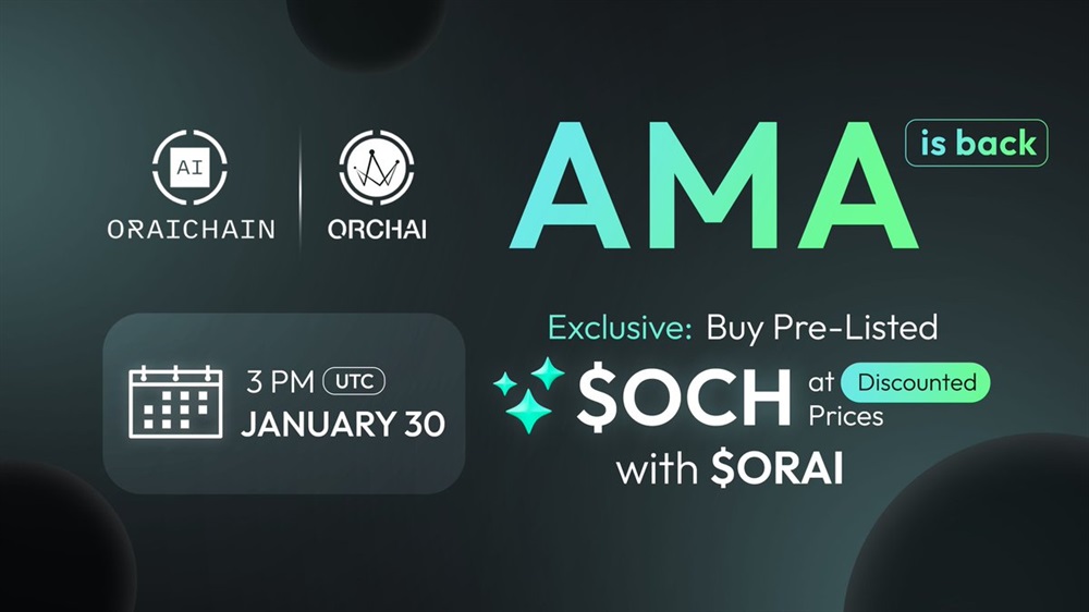 Oraichain Token will host an AMA on Telegram on January 30th at 3 pm UTC. The focus of the session will be on the OCH bonding program.