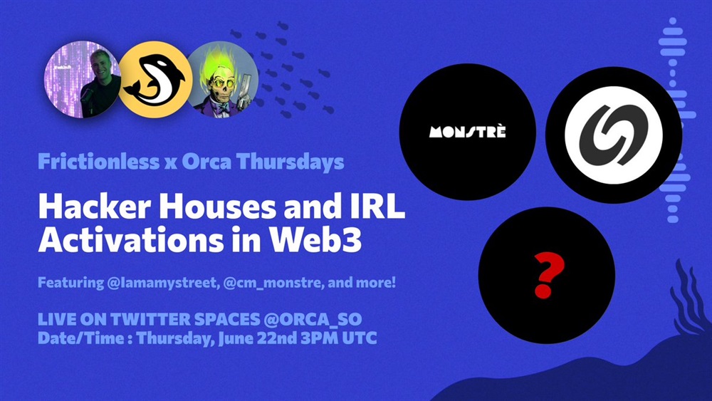 Join @_Frictionless_ and Orca tomorrow to discuss Hacker Houses & IRL Activations in Web3!