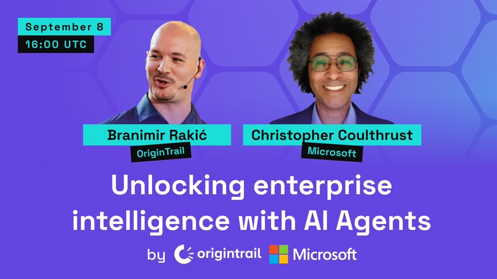 OriginTrail, in collaboration with Microsoft, will host a webinar titled “Unlocking Enterprise Intelligence with AI Agents” on September 8 at 16:00 UTC. The session will feature CEO Chris Coulthrust from Microsoft and co-founder, Brana Rakić from OriginTrail, who will demonstrate how Microsoft and OriginTrail’s Node and MCP technologies are pushing the boundaries of verifiable AI solutions for enterprise use. The discussion is set against the backdrop of Microsoft CEO Satya Nadella’s statement: “SaaS is Dead — The Future is AI Agents”.