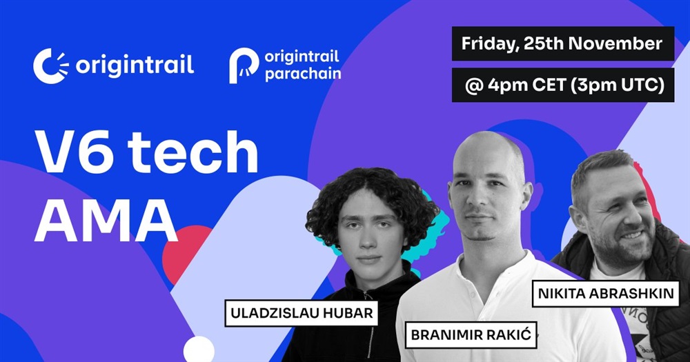 This Friday at 4pm CET, @OriginTrailDev will host✍️a chat AMA & answer your questions on @origin_trail DKG #V6. Join us in #v6-tech-discussion Discord channel to get the latest #V6 status update👉 discord.gg