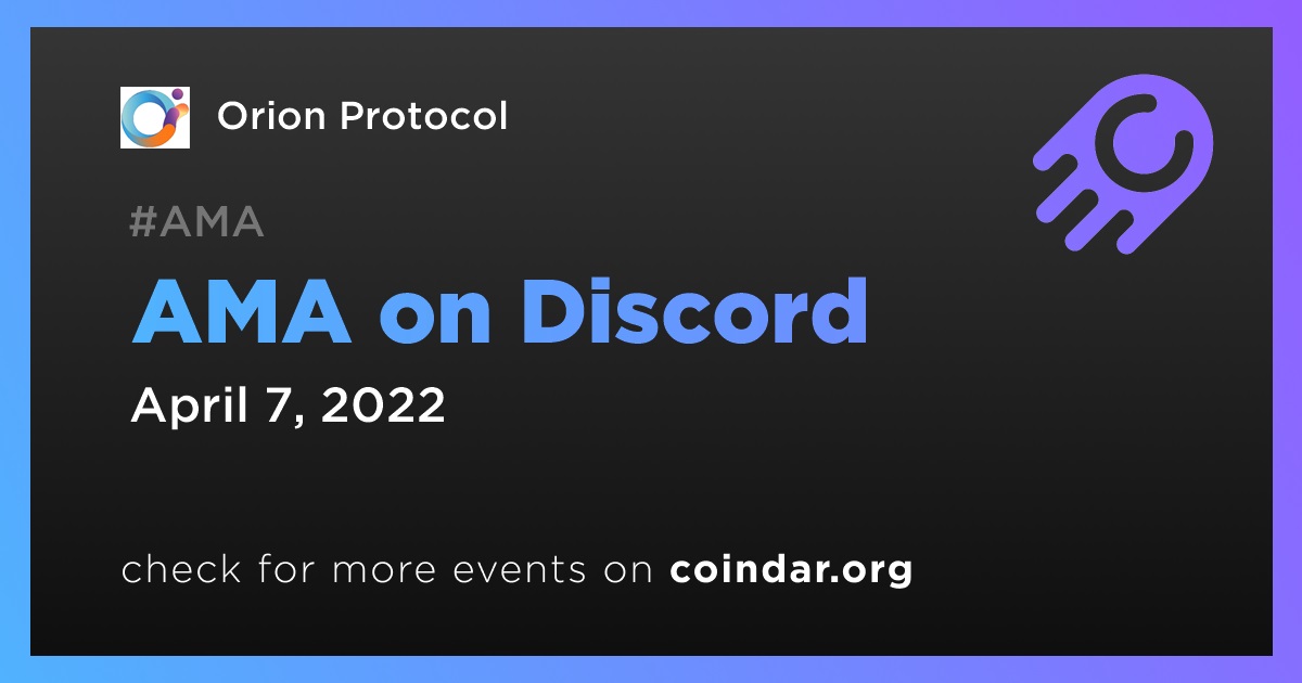 Orion Protocol launches its new #Discord server: April 7th, + live AMA feat. Orion team + guest @tehMoonwalkeR.
