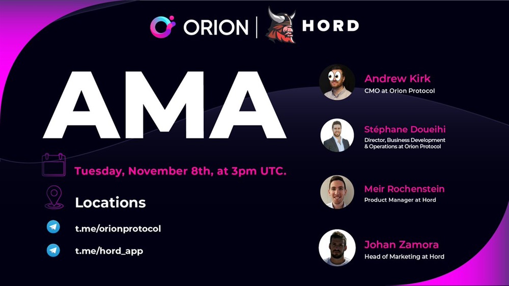 The AMA will take place in Orion's TG channel for part 1 and resume in Hord's TG channel for part 2