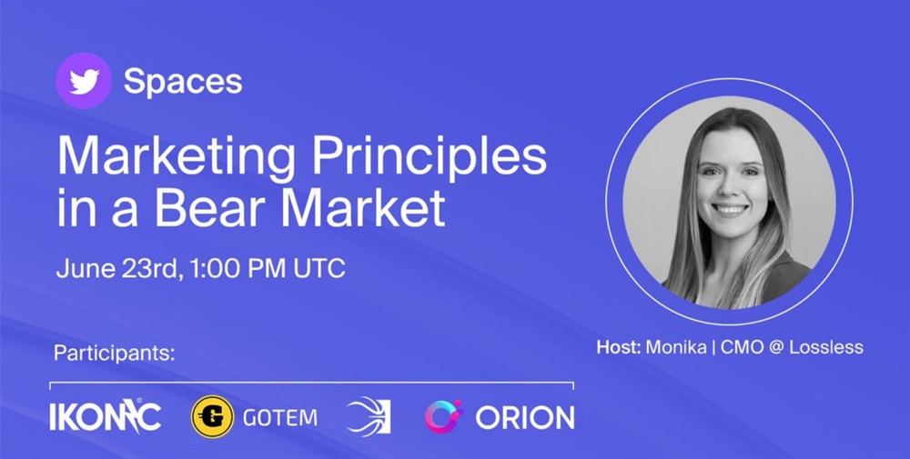 Orion Protocol CMO, @AndrewK2049, joins @losslessdefi CMO, @Monika_svdrsk, + several guests to discuss the "Principles of Marketing in a Bear Market."