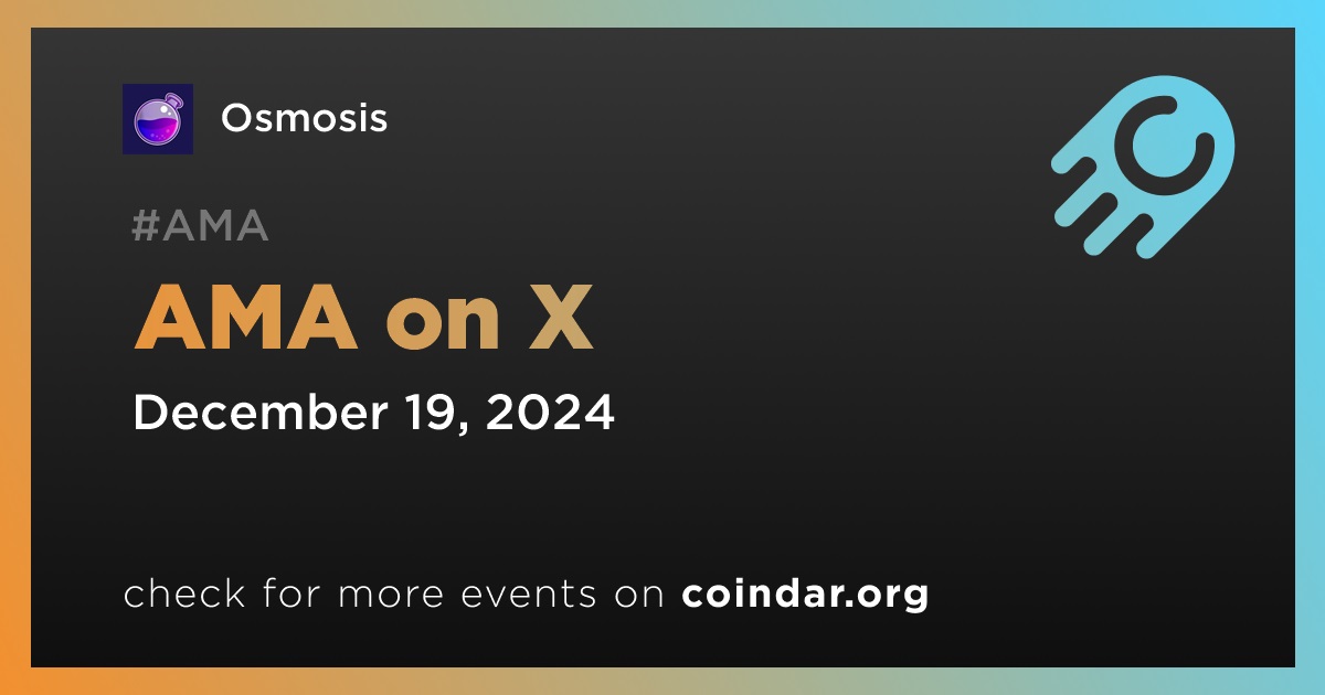 Osmosis will hold an AMA on X on December 19th at 6 pm UTC. The session will cover highlights from 2024 and outline plans for the upcoming year.