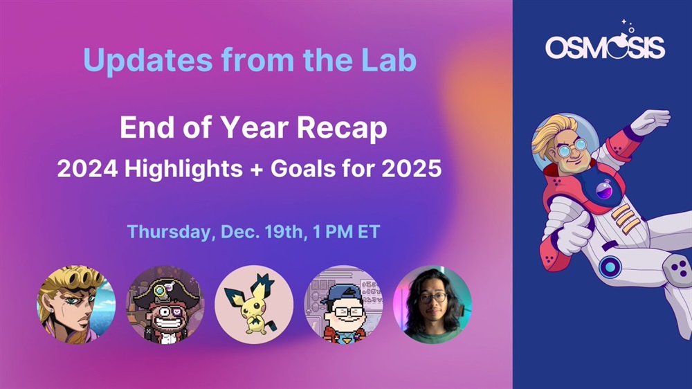 Tune in next week for this year's final episode of Updates from the Lab! We'll dive into Osmosis highlights from 2024, and plans for the year ahead 🧪