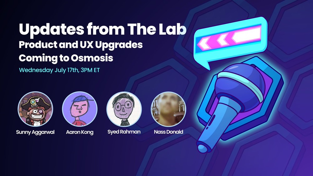 On next week's episode of Updates from the Lab, join this panel of all-star contributors for a deep dive into all of the exciting product + UX upgrades coming to Osmosis! 🧪🧠