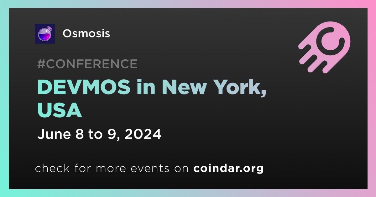 Osmosis is organizing a technical conference named DEVMOS in New York on June 8th-9th. The conference will bring together the best and brightest builders in the Cosmos for a series of technical talks focused on the dynamic interchain ecosystem.