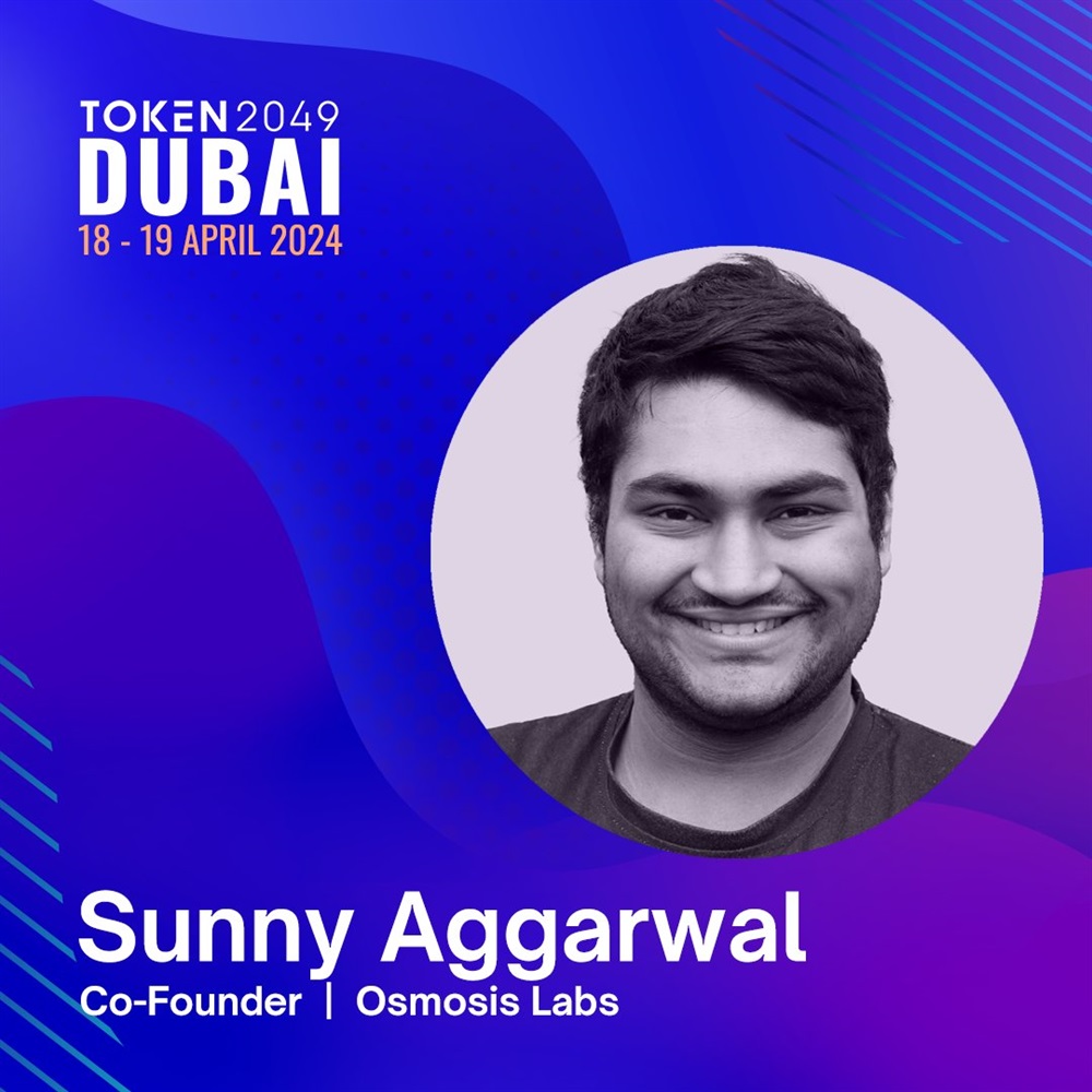 Osmosis has announced that Sunny Aggarwal, a representative from the company, will be speaking at the upcoming Token2049 conference taking place in Dubai on April 18th-19th.