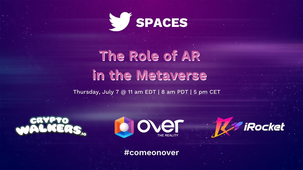 Join our #TwitterSpace this Thursday, July 7 as we talk about "The Role of AR in the Metaverse" with @WalkersCrypto and @iRocketGlobal!🥳