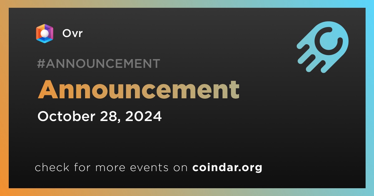 Ovr has announced an upcoming event for augmented reality (AR) creators and mappers, indicating significant developments to be unveiled on October 28th.