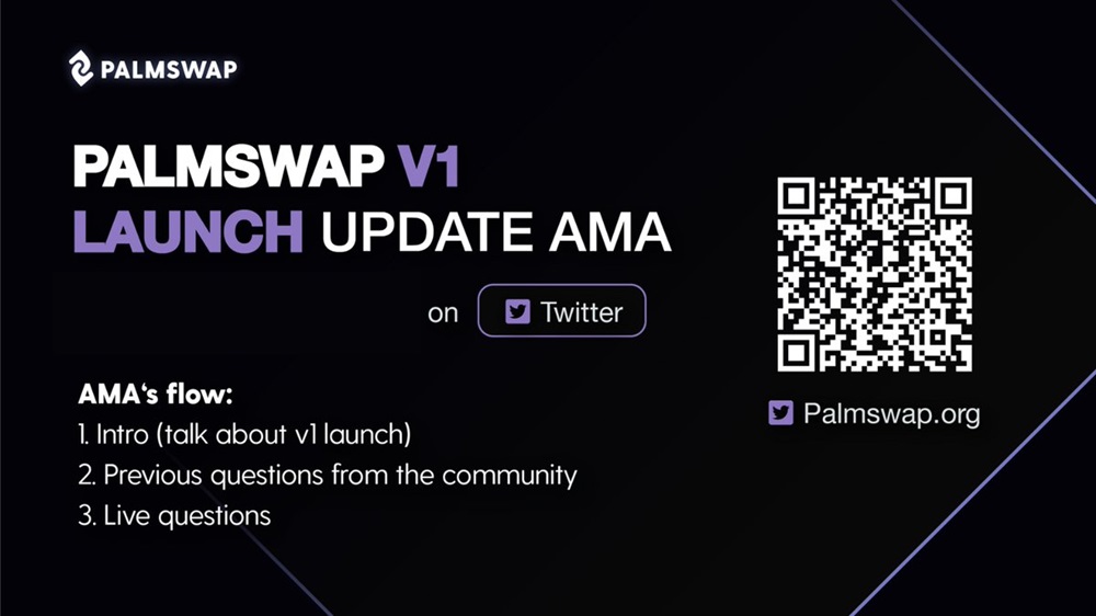 We're hosting a Twitter AMA for Palmswap V1 launch updates! 💻 Join us on April 24 at 5PM UTC to get the latest news on our decentralized exchange. Plus, we're giving away $250 to five lucky participants!