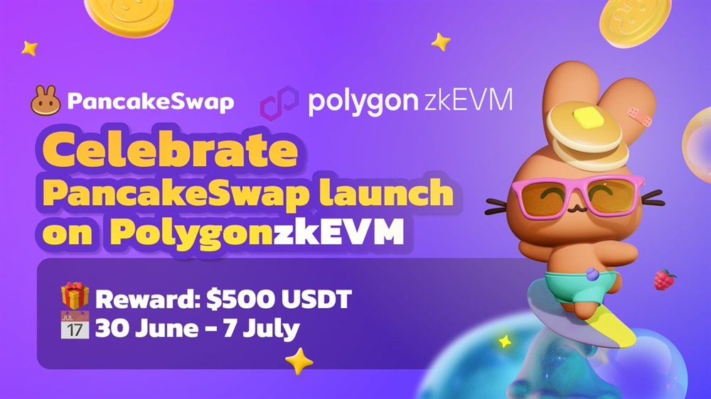 PancakeSwap launches a giveaway of $500 USDT to celebrate their launch on Polygon zkEVM, 25 lucky winners will win $20 USDT each.