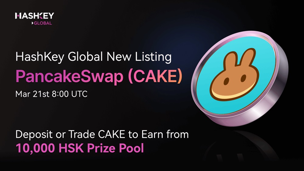 HashKey Global will list PancakeSwap (CAKE) on March 21st under the CAKE/USDT trading pair.