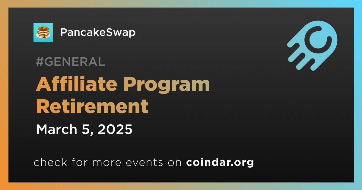 PancakeSwap has announced that its affiliate program will be retired on March 5th at 23:59 UTC. The decision is part of an effort to streamline offerings and focus on more sustainable and impactful products for the community.