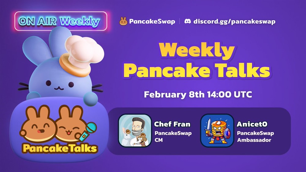 Join Chef Fran 🥞 & Anicet0 every week on Discord to dive into the latest PancakeSwap updates, review market news, and most importantly, have a good time with the community 🌐