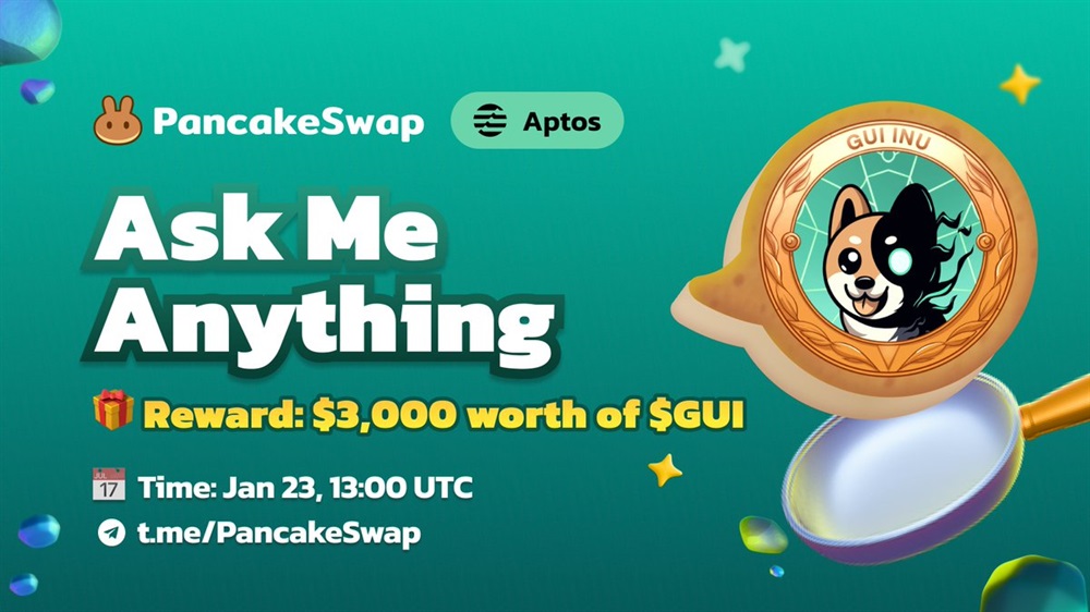 PancakeSwap will hold an AMA on Telegram with GUI INU on January 23rd at 13:00 UTC. The event will feature a prize pool worth $3,000 in GUI tokens.