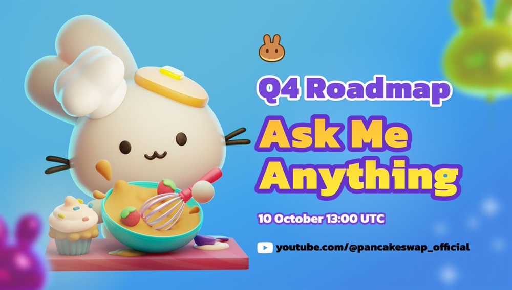 PancakeSwap will host an AMA on YouTube on October 10th at 13:00 UTC. The session will focus on discussing the Q4 roadmap.