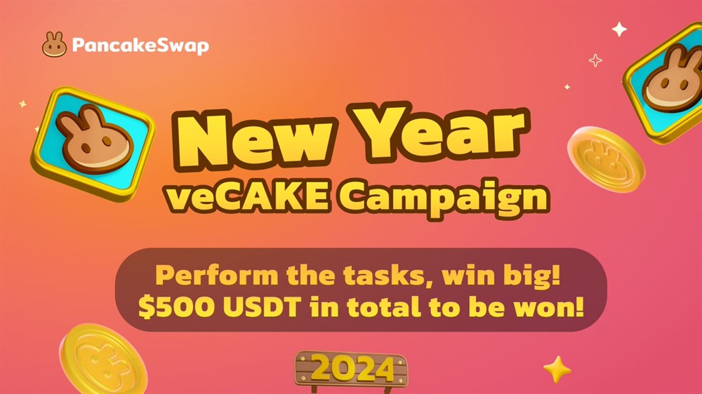 PancakeSwap is organizing a New Year’s Campaign where participants will have to answer two easy questions about the new veCAKE release. The campaign will be from December 28th to January 11th, participants may share a prize pool of 500 USDT.