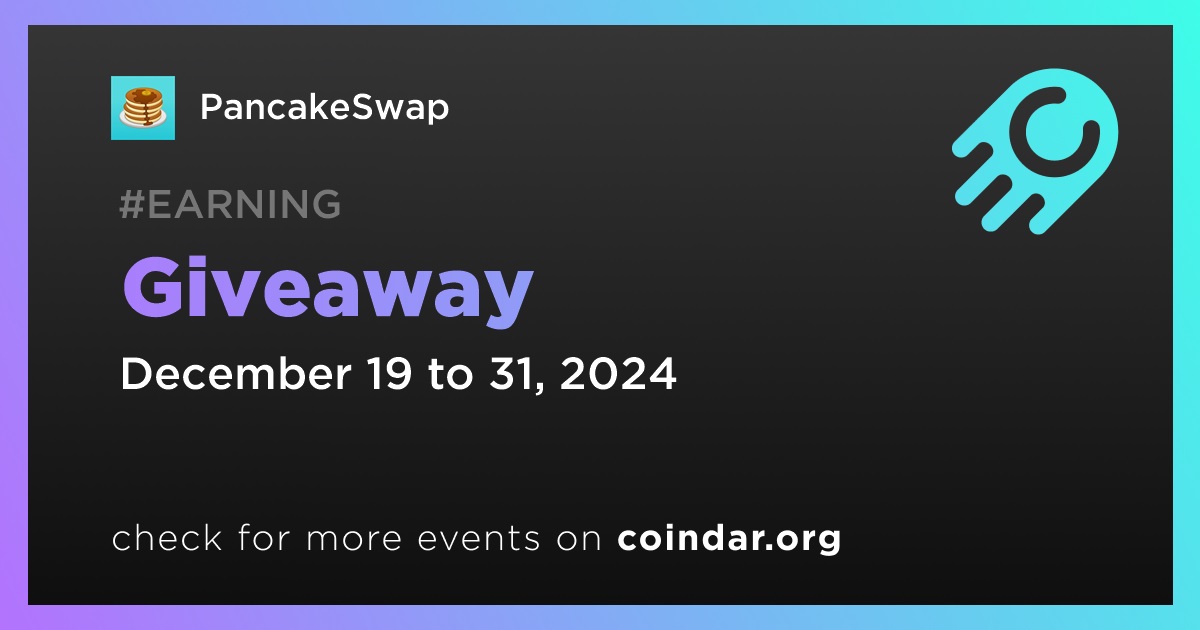 PancakeSwap is hosting CAKE giveaway. The event, running from December 19 to December 31, invites community members to participate in a festive prize pool of $500 in CAKE tokens.