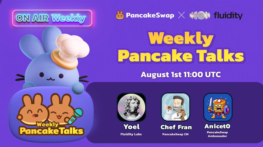 PancakeSwap will host a live stream on YouTube on August 1st at 11:00 UTC. The guest for this episode will be the head of community at Fluidity Labs. The discussion will focus on the workings of Fluidity Labs and the potential benefits it can offer.