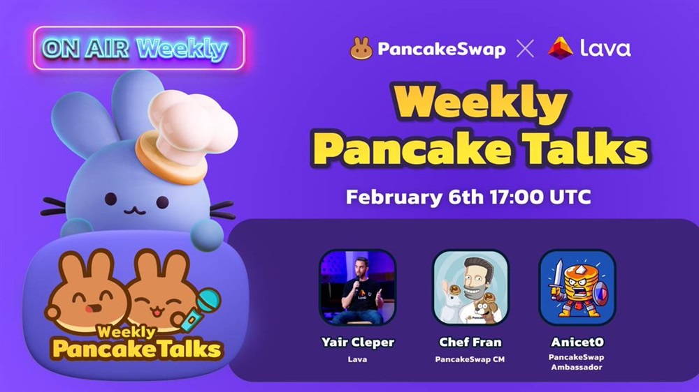 PancakeSwap will host a live stream on YouTube, featuring Lava Network on February 6th at 17:00 UTC.