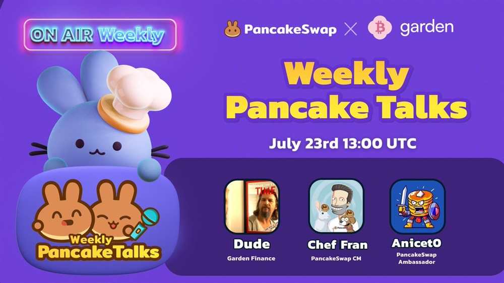 PancakeSwap will host a live stream on YouTube on July 22nd at 13:00 UTC. The special guest will be a representative from the Garden team. The discussion will focus on integrating Bitcoin (BTC) into DeFi.