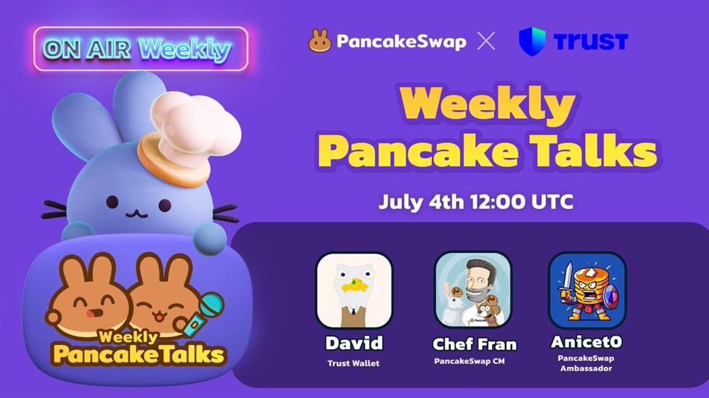 PancakeSwap will host a live stream on YouTube on July 4th at 12 UTC. The guest for this session will be the representative from Trust Wallet. The discussion will revolve around the latest updates and upcoming features that are expected to benefit the PancakeSwap community.
