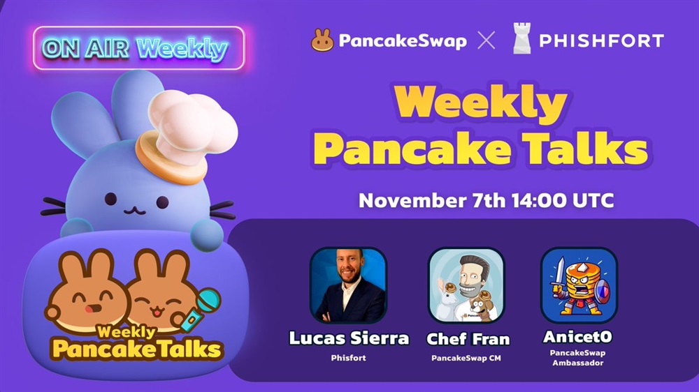 PancakeSwap will host a live stream on YouTube on November 7th at 14:00 UTC. The discussion will feature PhishFort.