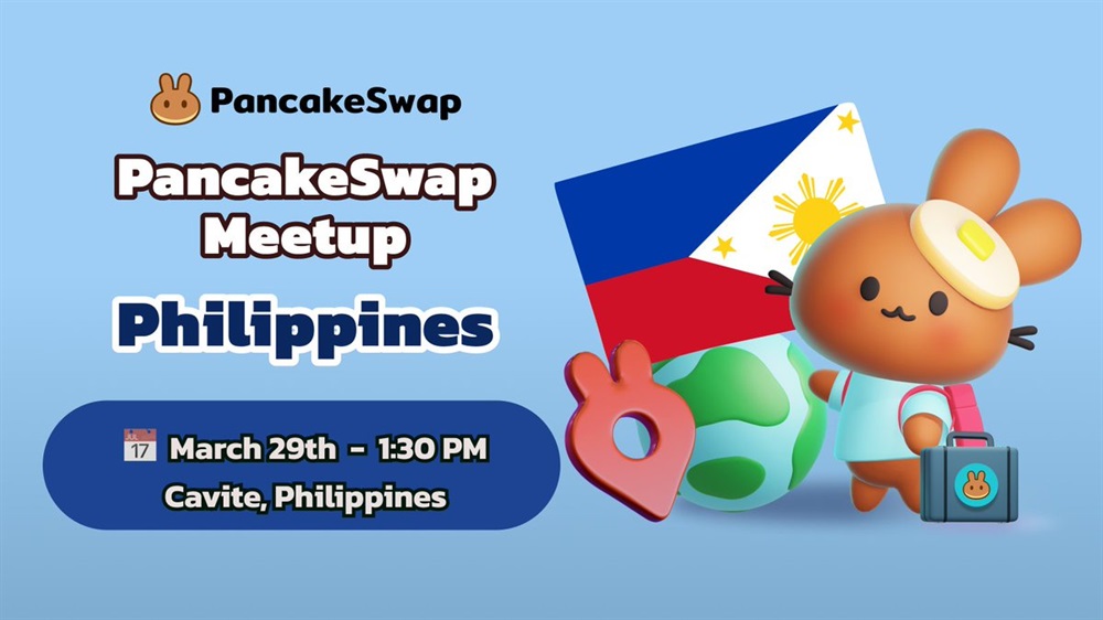 PancakeSwap will host its inaugural meetup in Cavite on March 29th from 05:30 to 08:30 UTC.