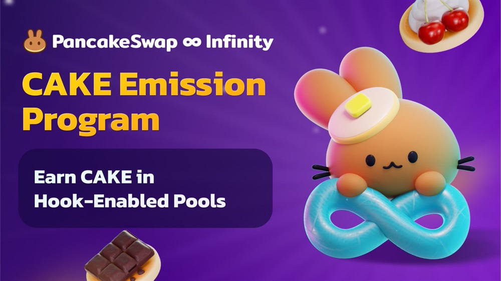 PancakeSwap has introduced the Infinity CAKE Emission Program, under which liquidity providers in Hook-enabled pools will receive CAKE rewards and developers deploying Hooks may obtain ecosystem support. The initiative allocates up to 1,440 CAKE per day to eligible pools.
