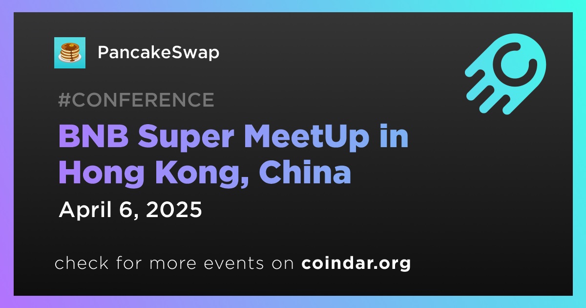PancakeSwap will attend BNB Chain’s BNB Super MeetUp event in Hong Kong on April 6th at 10:00 UTC. The event will focus on decentralized finance (DeFi).