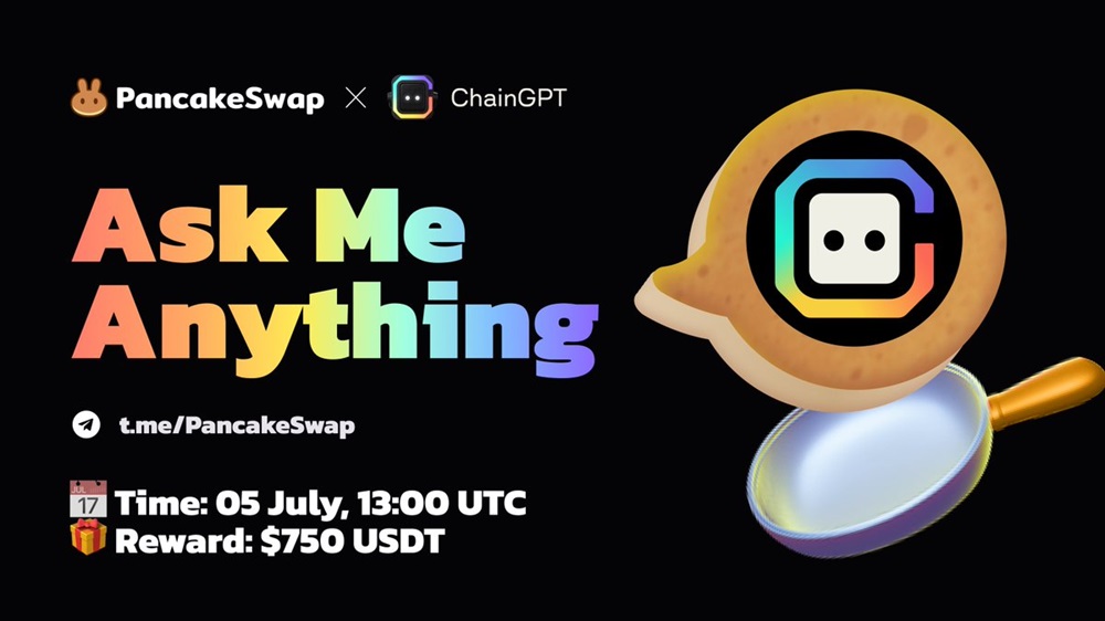 PancakeSwap will host an AMA on Telegram on July 5th in collaboration with ChainGPT. Participants of the AMA will have a chance to win exciting prizes by following both ChainGPT and PancakeSwap on Twitter, joining the PancakeSwap Telegram channel, and actively engaging in the event by asking questions or answering quiz questions prepared by the ChainGPT team.