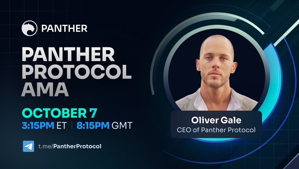 Panther Protoco will host an AMA on Telegram with the co-founder on October 7th at 20:15 UTC. The purpose of the session is to discuss various aspects related to Panther Protocol.