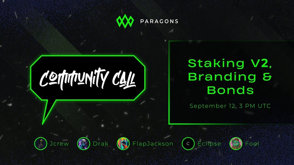 ParagonsDAO is set to host a community call on September 12th at 3 pm UTC. The focus of the call will be on the new staking system, updates on bonds, and new partnerships. The organization will also present its new branding.