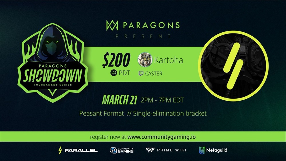 ParagonsDAO will host Paragons Showdown tournament on March 21st at 18:00 UTC. The event will feature a prize pool of $200 in PDT tokens.