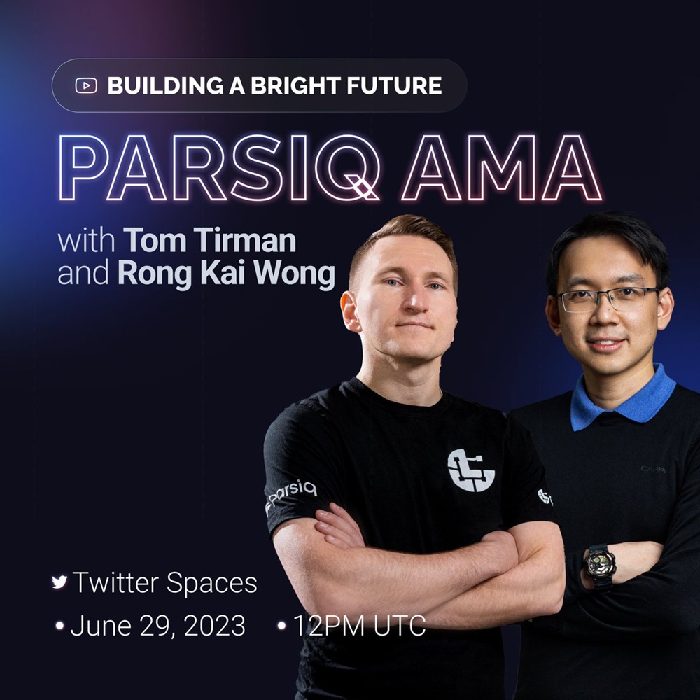 ‘Let’s Talk PARSIQ – Building a Bright Future’ feat. @TirmanTom & @RongKaiPARSIQ is set for june 29 at 12pm UTC.